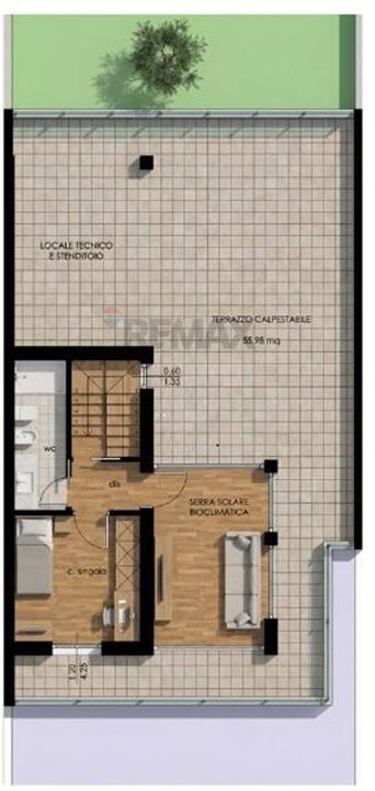 Primo piano: cameretta, bagno e serra bioclimatica utilizzabile come ulteriore stanza o ambiente polifunzionale. La camera e la serra si affacciano direttamente su un ampio terrazzo, per godere di attimi in relax o per creare un ambiente multifunzionale.