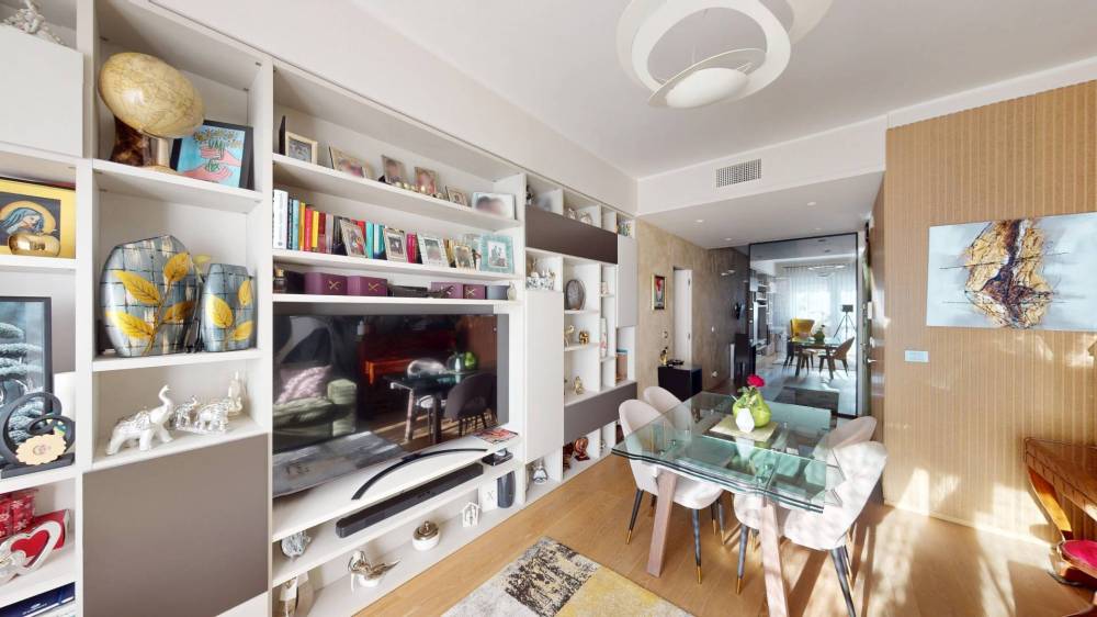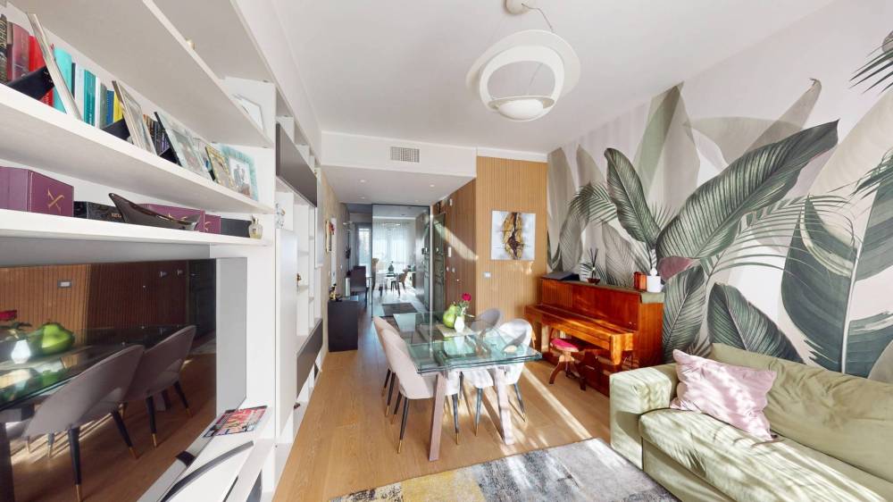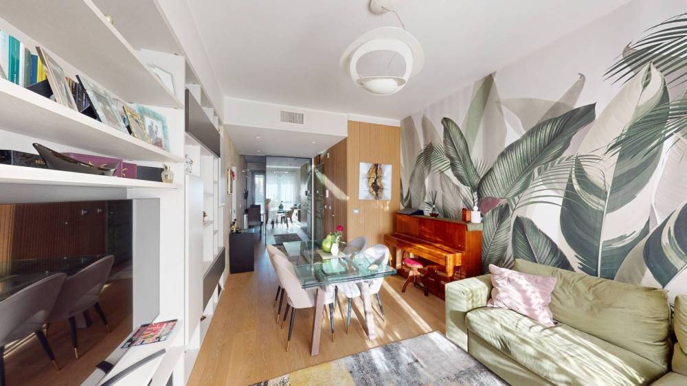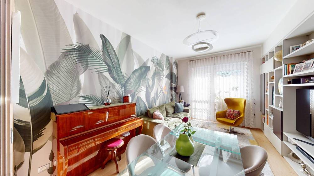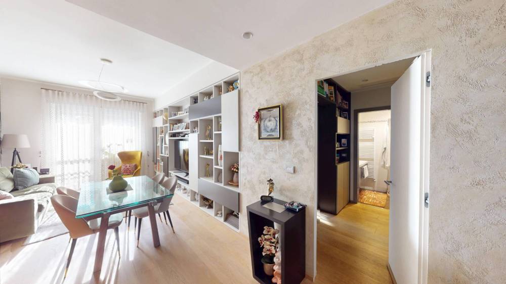 L'appartamento, in ottimo condizioni interne, è composto da ingresso living su zona giorno, cucina, due ampie camere da letto, due ripostigli, uno interno ed uno esterno e doppi servizi.