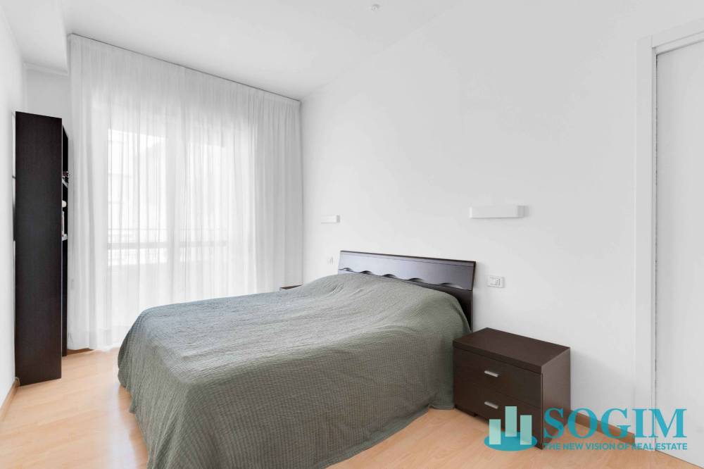 Dall'area living si accede al disimpegno che conduce alla prima camera matrimoniale dotata di guardaroba e balcone di pertinenza oltre al bagno finestrato con vasca. Il corridoio, connotato dalla semplicità di linee pulite e la continuità cromatica, permette di accedere alla zona notte che accoglie altre due camere matrimoniali, una ad oggi utilizzata come camera ospiti/guardaroba, l'altra, di dimensioni molto generose, con bagno en-suite ed accesso diretto al terrazzo privato, uno spazio raro per gli appartamenti della città.