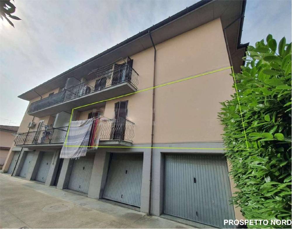 piena proprietà di appartamento posto al piano terra (rialzato), inserito in edificio plurifamigliare, composto da soggiorno, cucina, disimpegno, due bagni, due camere da letto e due balconi con cantina e autorimessa al piano seminterrato.