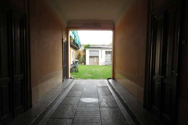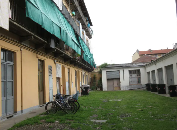 Unità al terzo piano (quarto fuori terra) con accesso dal ballatoio comune, composto di una camera, cucina, bagno e antibagno, e wc comune posto sul ballatoio, con una piccola cantina.