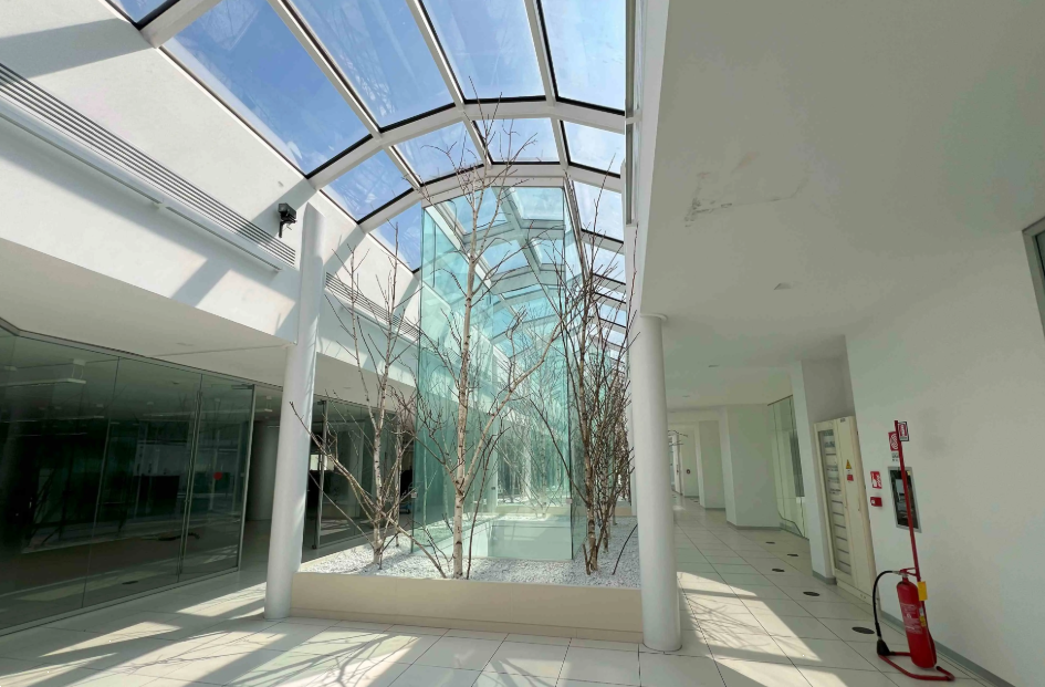 Complesso industriale di pregio situato a Santena (TO), gli elementi che ne fanno parte lo rendono un complesso di alto valore rappresentativo, capace di conferire prestigio all'azienda che volesse adibirla a propria sede: troviamo infatti all'interno di esso un parco molto grande e curato sul quale è stata ricavata una pista erbosa per il decollo e l'atterraggio di velivoli da diporto o sportivi. A seguire troviamo un atrio molto maestoso, locali dirigenziali e sale riunioni con finiture e materiali di pregio, elementi di impatto architettonico/artistico, spazi produttivi realizzati con livelli di cura superiori allo standard.