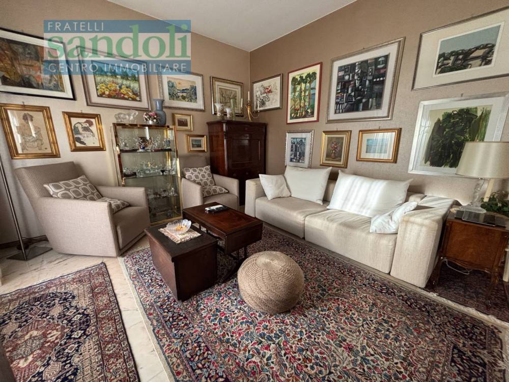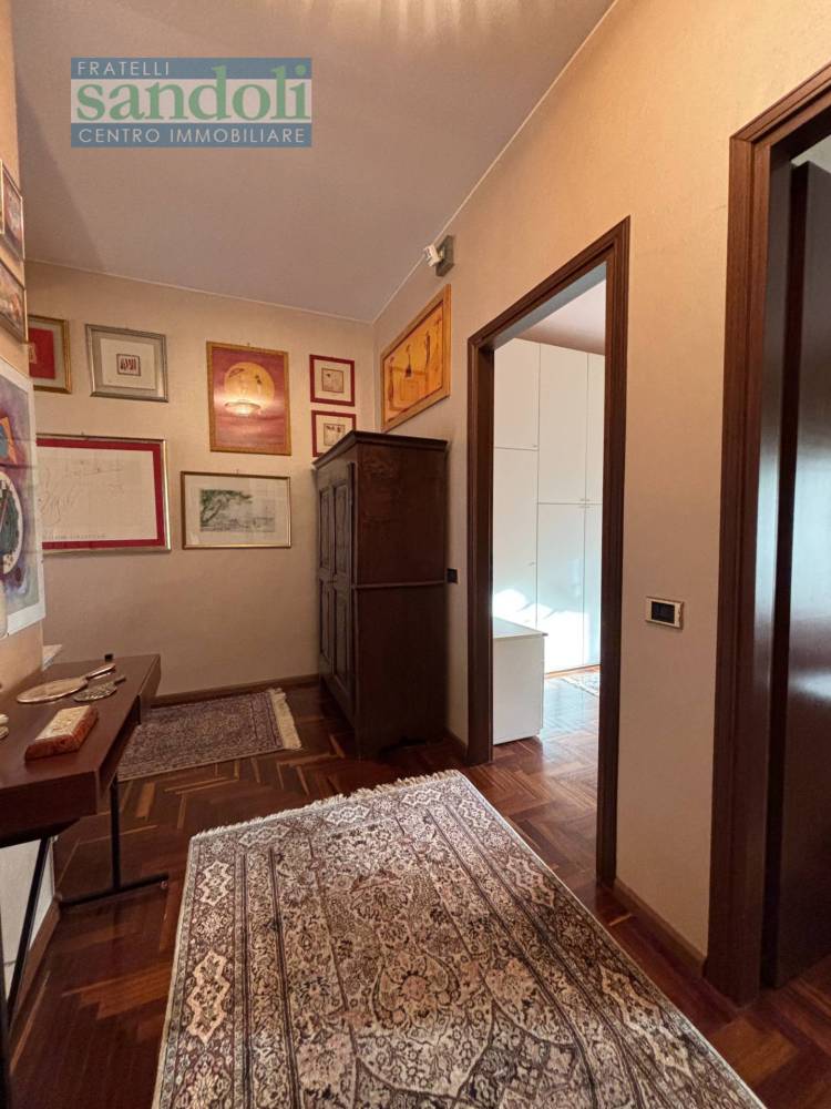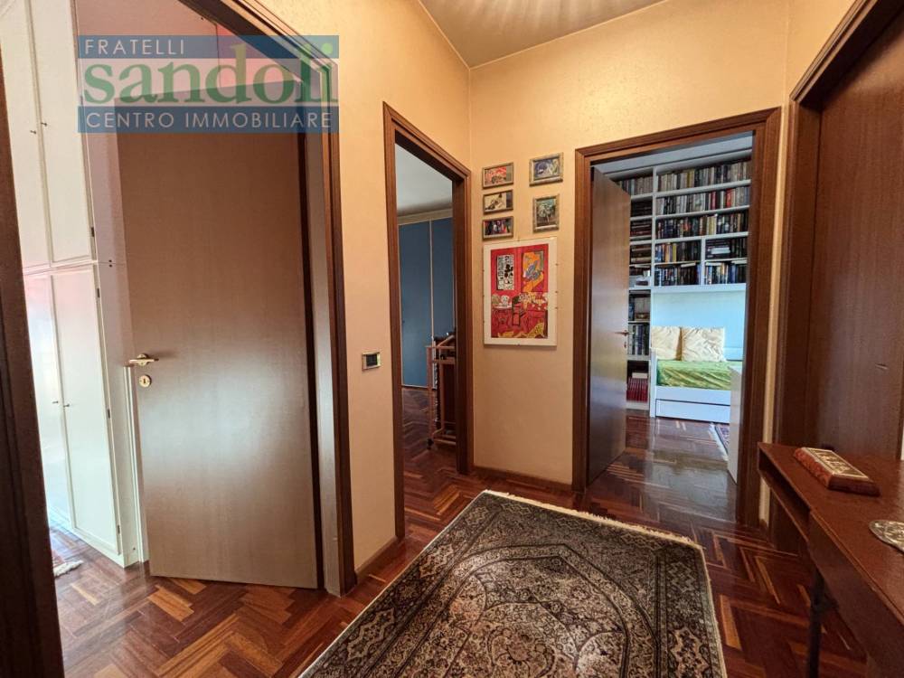 Salendo da una signorile scala foderata in marmo a venature ed affaccio diretto all'ingresso, accediamo al primo piano dove, da un ampio disimpegno, si sviluppa tutta la zona notte, composta da una spaziosa camera matrimoniale, e due camere singole di cui una attualmente adibita a stanza degli armadi, il tutto con una bellissima e ben curata pavimentazione in legno e relative uscite sugli ampi balconi.