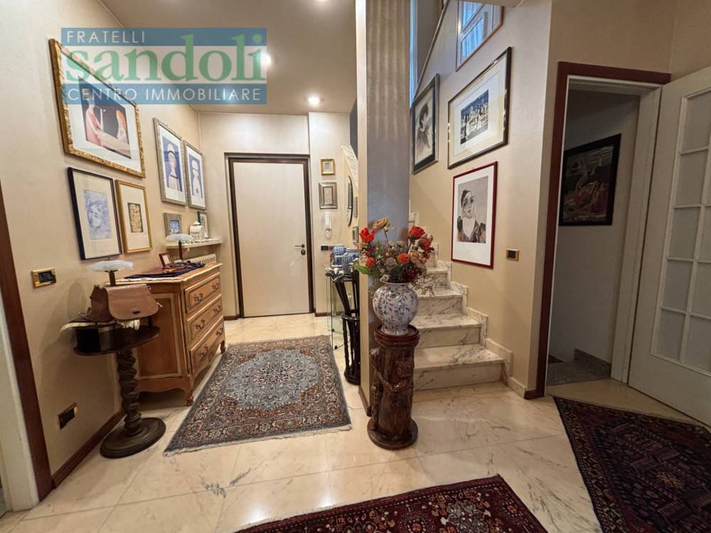 Scendendo ulteriormente da una comoda scala in muratura a fianco del portoncino blindato dell'ingresso, arriviamo al piano seminterrato dove troviamo una bellissima taverna con camino a vista, una spaziosa lavanderia attrezzata, la cantina e con accesso diretto un grande box auto con porta sezionale e con bascula automatica, ideale per autovetture moderne di grandi dimensioni.
