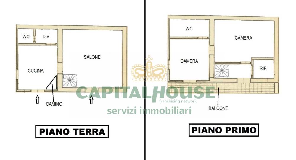 -piano primo: (43mq interni calpestabili) 2 camere, ripostiglio, bagno e balcone di 10mq;
