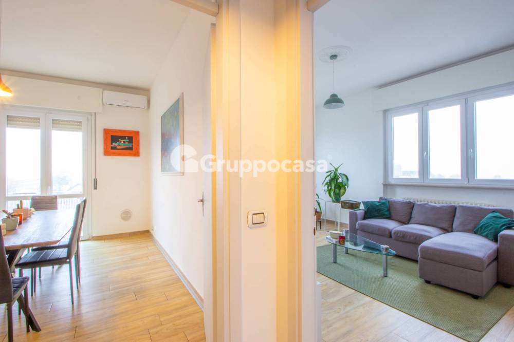 L'appartamento è composto da ingresso, soggiorno, cucinotto con tinello, due camere da letto, disimpegno, bagno, ampio balcone.