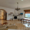 Da un ampio portico si accede ad un luminoso salone, con camino, caratterizzato da un ampia vetrata che affaccia sul camminamento in cotto che circonda la casa.