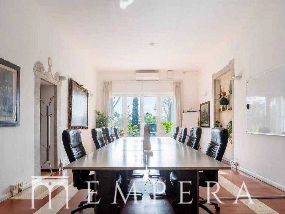 Immerso nella splendida cornice dell'Ardeatina, situato nelle immediate vicinanze dell'Appia Antica e della riserva naturale della Cecchignola, proponiamo la vendita di uno splendido casale d'epoca di circa 2.000 mq, realizzato nei primi del 900, completamente immerso nel verde di un vasto parco secolare di un ettaro. La proprietà, recentemente ristrutturata, è stata convertita in area business con ampi uffici ultramoderni, multifunzionali e completamente arredati. La sontuosa villa è anche dotata di esclusivi servizi per gli ospiti, con ampia piscina, un centro massaggi e un ampio parcheggio dove trovano spazio circa 40 vetture e un autorimessa di circa 500 mq che da la possibilità di ulteriori parcheggi. I due edifici laterali adiacente il corpo centrale della struttura sono dedicati uno ad ulteriori uffici, nell'altro è presente la casa del custode. L'immobile nasce come abitazione, attualmente è accatastato come A/10 (ufficio) ma facilmente ripristinabile allo stato abitativo originario. La villa è dotata di doppio ingresso con due entrate indipendenti con cancelli automatici facilmente raggiungibili da strada privata.