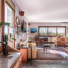 Lappartamento, finemente ristrutturato, accoglie con un salone doppio di grande rappresentanza, impreziosito da un importante camino in marmo e da una raffinata pavimentazione in marmo grigio. Le ampie superfici vetrate incorniciano il paesaggio come un quadro vivente, regalando tramonti spettacolari e una luminosità costante.
