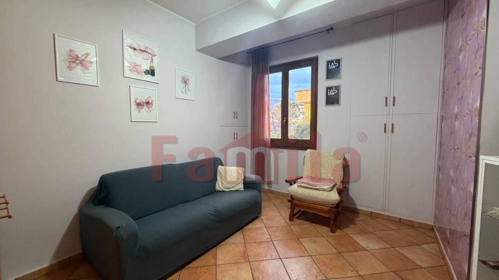 L'appartamento, di circa 110 mq, è composto da ampio salone con termo camino a pallet, cucina con angolo cottura, camera da letto con bagno, cameretta, un altro bagno, due ripostigli e lavanderia.