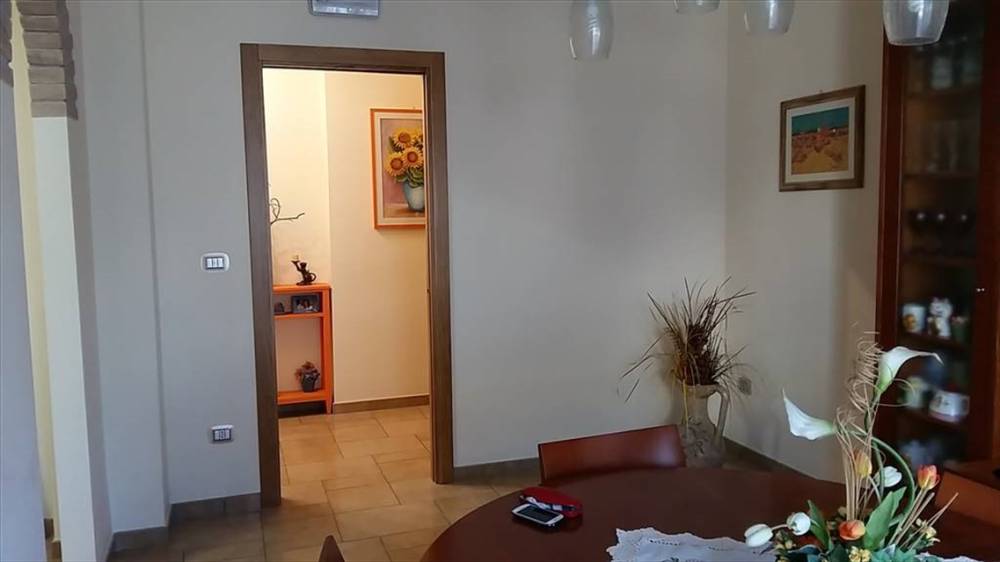 In Via degli Ernici 13, appartamento al primo piano di circa mq.135 di un fabbricato per civile abitazione dislocato su quattro piani, composto da ingresso, cucina, pranzo, soggiorno, disimpegno, tre camere, ripostiglio, bagno e wc, due balconi con affaccio su corte condominiale, con annesso locale garage di circa mq.35.