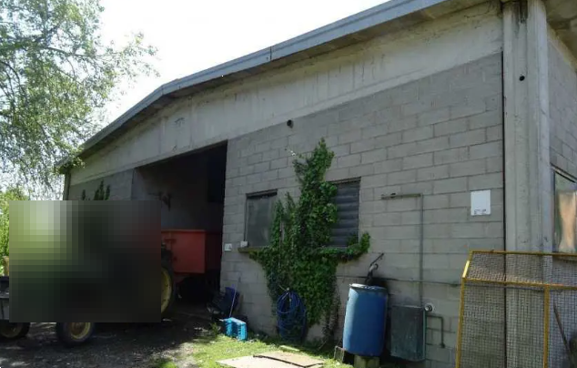 E) Edificio elevato di un solo piano fuori terra, adibito a deposito, rimessa foraggi e stalletta;