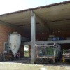 D) Stalla elevata di un solo piano fuori terra, con annessi locali di servizio adibiti a raccolta latte, deposito mangimi e servizi igienici;