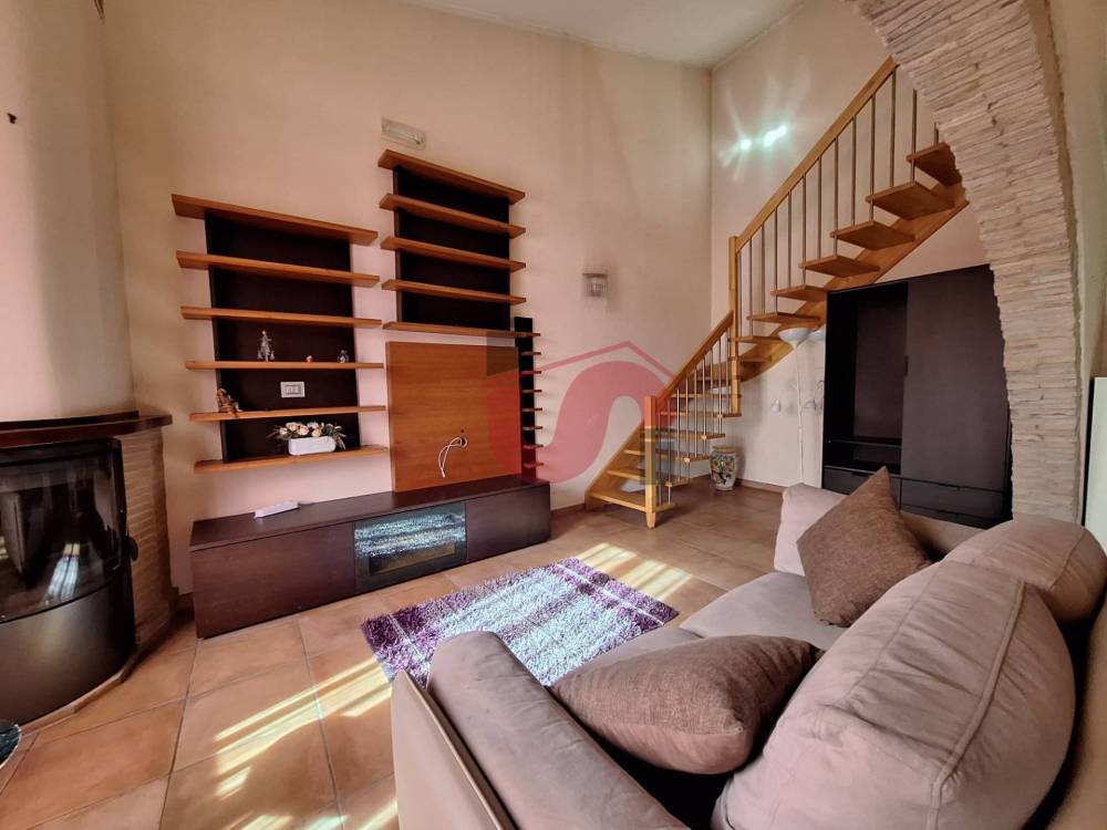 Lingresso si apre direttamente su unampia e luminosa zona giorno, caratterizzata da un suggestivo arco in mattoncini a vista e da un accogliente camino; questo ambiente, estremamente luminoso grazie all'affaccio su un balcone ottimamente esposto, comunica con una cucina abitabile con affaccio sullo stesso balcone. A servizio della zona giorno troviamo inoltre un pratico ripostiglio attrezzato a lavanderia, una camera adibita a studio con terrazzino privato che offre un angolo di assoluta riservatezza per il lavoro o il relax e il bagno padronale. Un disimpegno ben organizzato conduce infine alla zona notte dove si sviluppa la camera matrimoniale.