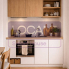 La cucina, pratica e funzionale, è completa di piano cottura a induzione, forno a microonde, frigorifero e lavatrice.