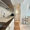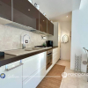 Allinterno si apre una ampia zona giorno con angolo cottura, una camera da letto matrimoniale e due servizi, di cui uno dotato di vasca idromassaggio e il secondo con doccia.