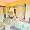 La cucina, pur essendo separata, mantiene un collegamento diretto con il salone grazie a due ingressi, creando un effetto simile a un open space parziale: funzionale per la vita quotidiana,
