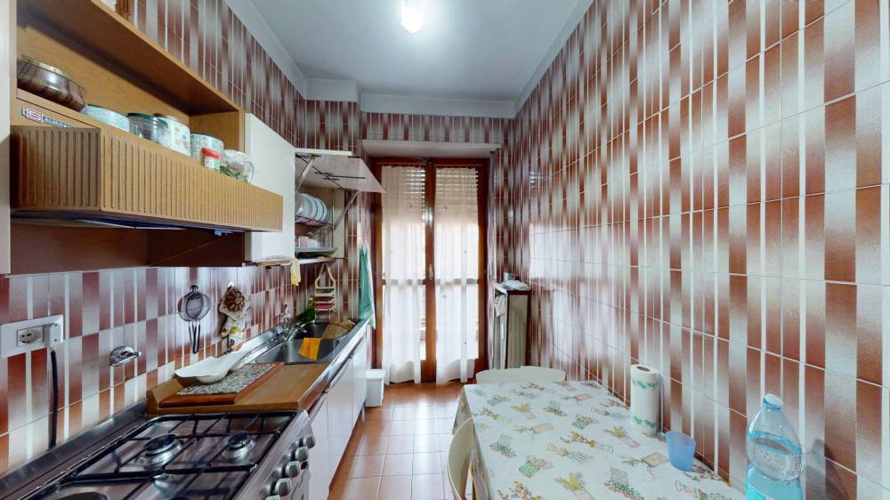 L'immobile è composto da ingresso su disimpegno, ampia zona giorno, tre camere da letto, cucina abitabile e doppi servizi, entrambi con finestra.