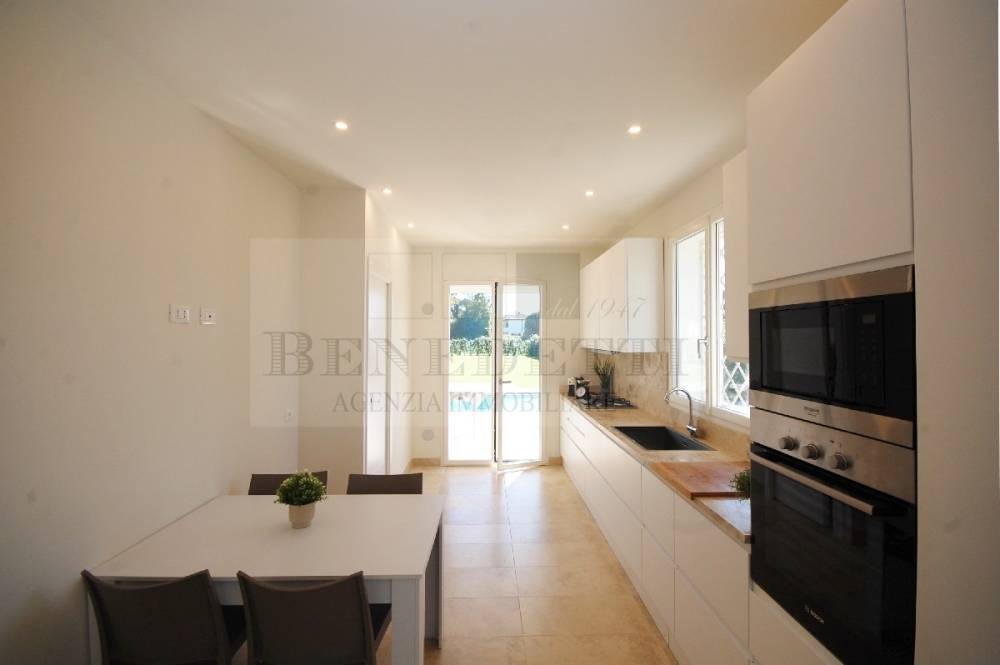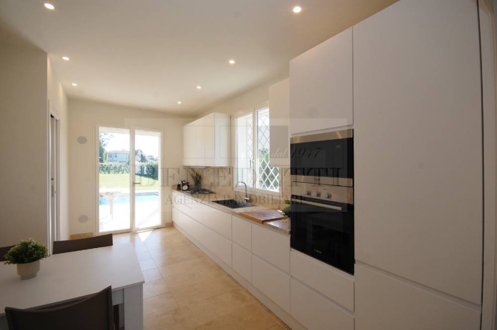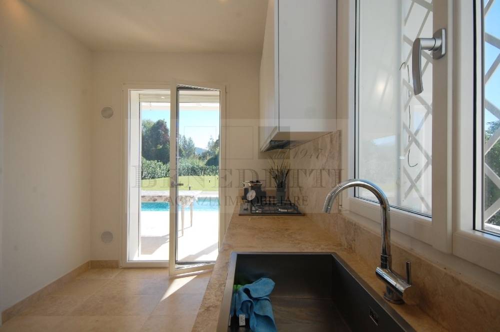 Pietrasanta, primissime adiacenze Centro: confortevole Villa singola di nuova ed elegante costruzione, corredata da ampio giardino privato ( oltre 1.000 mq ) e piscina privata. La villa in PRONTA CONSEGNA, è dotata di tutti i confort ed è realizzata in classe energetica A4. La superficie complessiva della villa sfiora i 200 mq ( interamente fuori terra ) e si compone di ingresso, soggiorno doppio, cucina abitabile, dispensa, camera matrimoniale con bagno esclusivo, altro servizio, a piano terra; al piano primo due camere matrimoniali dotate ciascuna di bagno privato e una suite esclusiva con vano armadi e bagno. La proprietà è corredata da balconi, ampia e luminosa veranda prospicente la piscina oltre vari posti auto interi alla proprietà. Maggiori dettagli in Agenzia