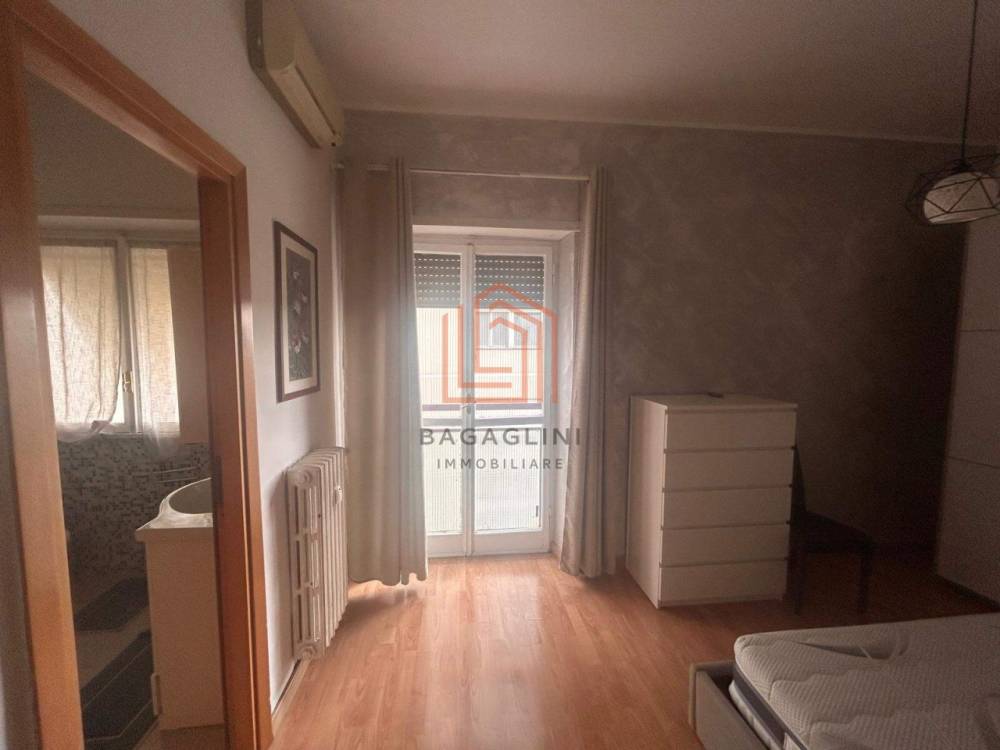 La zona notte è composta da una camera matrimoniale ben proporzionata e silenziosa, oltre a un servizio finestrato finemente rifinito. Completa la proprietà un balcone con affaccio su Via del Corso, ideale per godere della vivacità del centro cittadino.