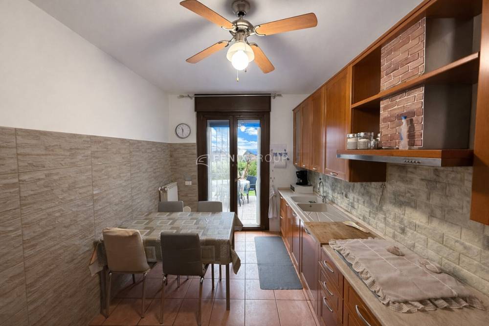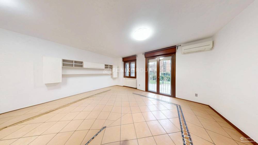 L’ingresso apre su un soggiorno di generose dimensioni, particolarmente luminoso e ideale per chi desidera vivere ambienti ampi e confortevoli. Accanto si trova la cucina abitabile, anch’essa di comode dimensioni. Sia dal soggiorno che dalla cucina è possibile accedere direttamente al giardino privato di circa 100 mq, uno spazio esterno riservato e perfetto per la vita all’aperto.