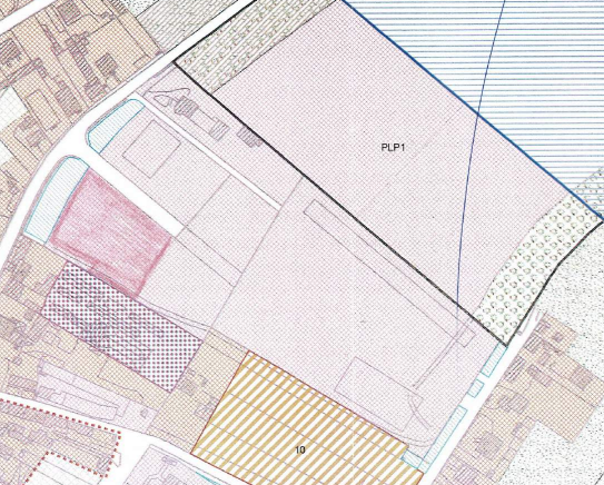 Area classificata come Tessuto a destinazione produttiva con possibilità edificatoria. La superficie fondiaria è di 3.442 metri quadri catastali.