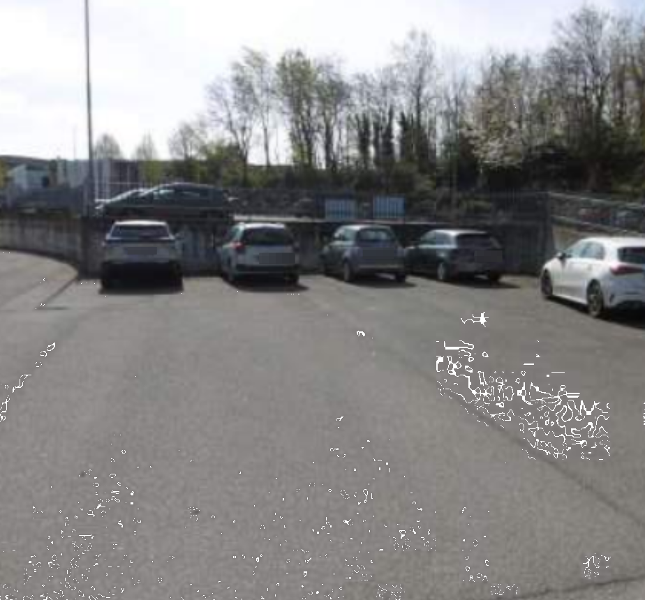 L'area destinata a corte scoperta, parcheggio, collocata all'interno di un complesso immobiliare a destinazione mista produttiva e commerciale.