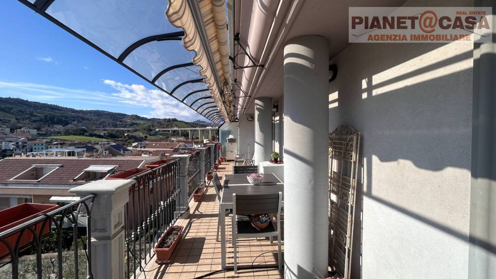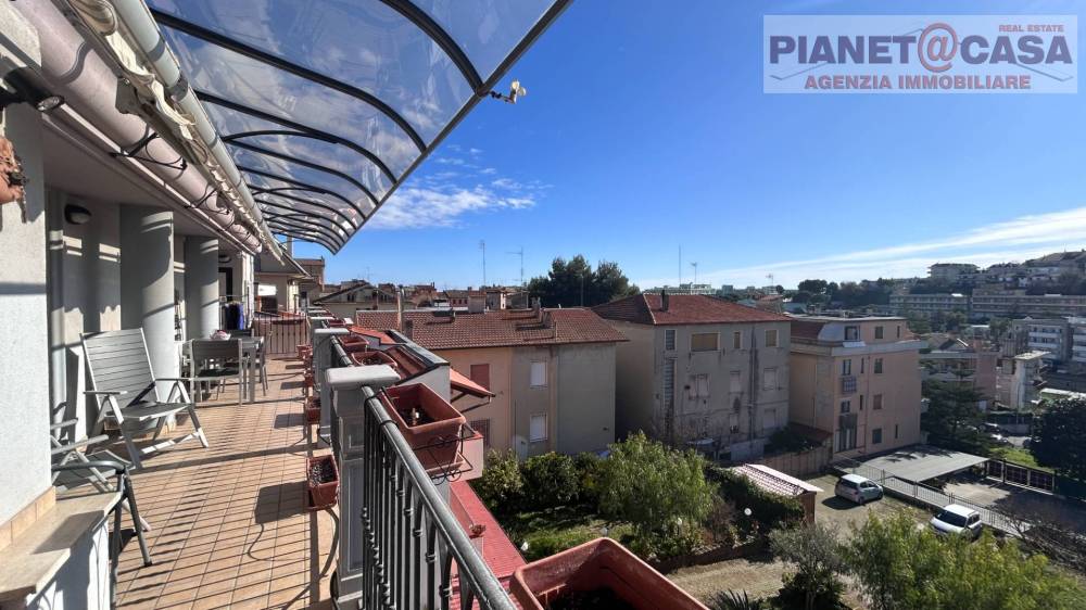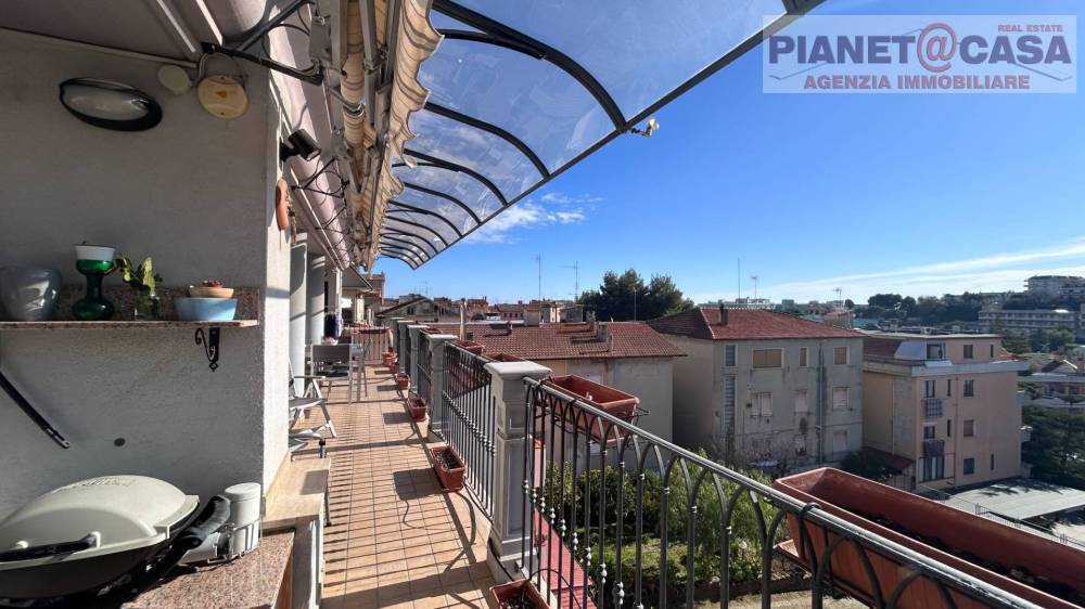 L'immobile, molto luminoso e soleggiato grazie all'ottima esposizione, si trova in una zona tranquilla e residenziale ma allo stesso tempo vicina a tutti i principali servizi e al mare e gode di una splendida vista aperta a sud e ad est sul caratteristico Torrione della città alta.