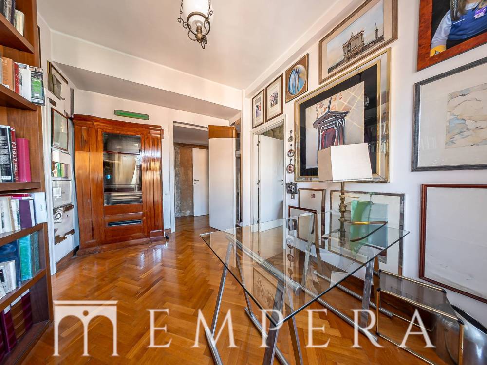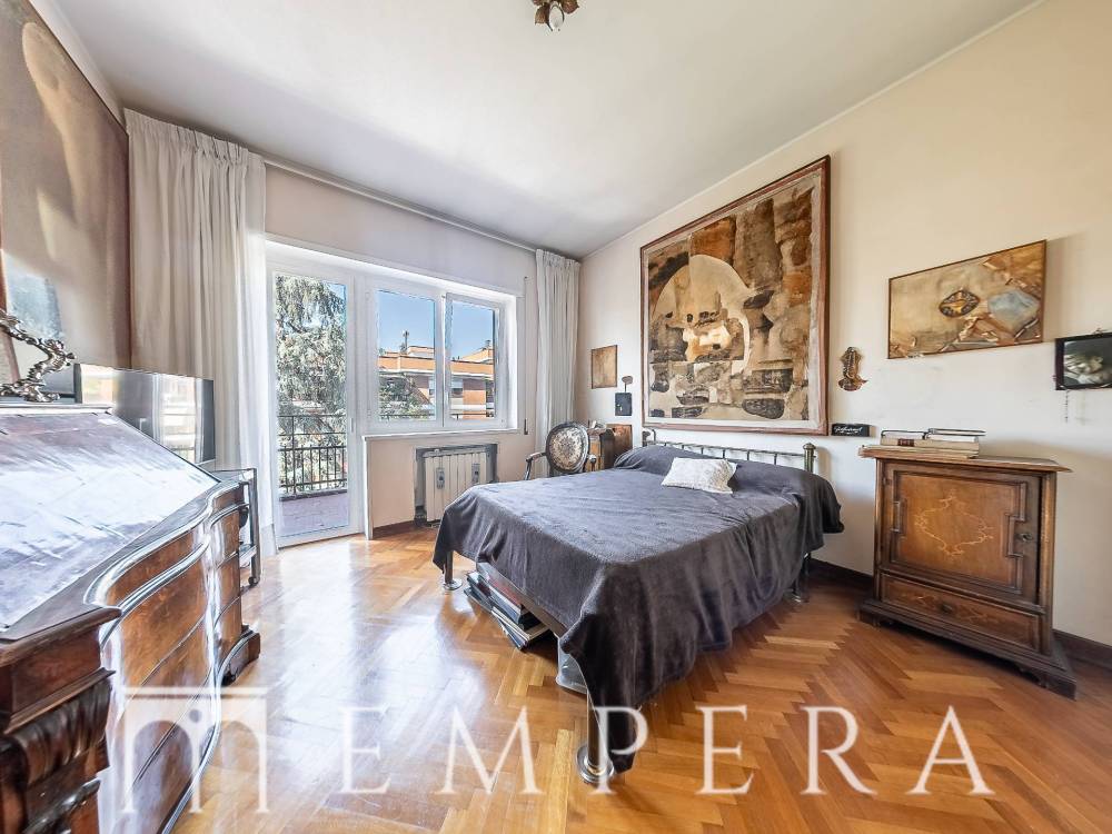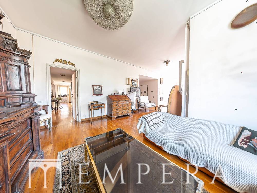 A pochi passi da Piazzale Ponte Milvio, in una delle zone più richieste di Roma Nord, precisamente in Via Della Farnesina proponiamo la vendita di un meraviglioso attico di ampia metratura, divisibile, posto all'ultimo piano di uno stabile in cortina in ottime condizioni dotato di doppio ascensore con servizio di portineria. L'appartamento è dotato di 2 ampi terrazzi abitabili a livello, dei quali uno semi-perimetrale con affacci aperti e luminosi. L'immobile attualmente è composto da doppio ingresso, salone triplo con ampie vetrate, 4 ampie camere da letto (due con bagno in camera), 1 cameretta, studiolo, ampia cucina abitabile con accesso ad uno dei terrazzi, 3 servizi, ripostigli, box auto, ampia cantina. In fase di ristrutturazione, la presenza di tramezzature permette una diversa ridistribuzione degli spazi interni e la realizzazione di un eventuale altra camera da letto ed un quarto servizio.