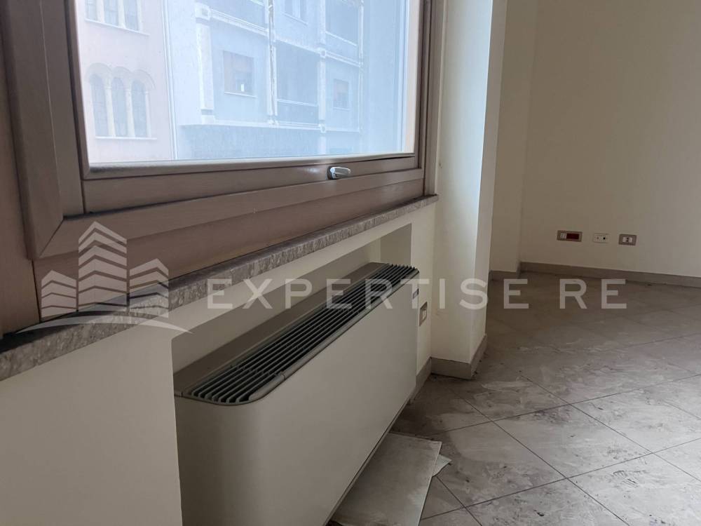 L'ufficio possiede doppia esposizione, su Via XXIV Maggio, per il tramite di quattro grandi finestre, che gli conferiscono luminosità e visibilità. Sul lato interno è presente da una parte un balcone perimetrale, e dall'altra accesso a cortile comune con altra unità immobiliare di proprietà di terzi, dove sono allocate le macchine del condizionamento.