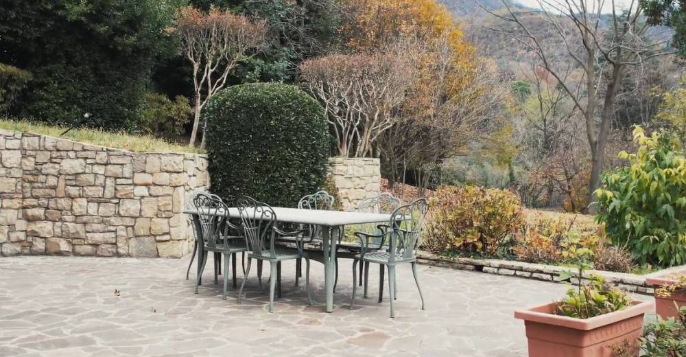 La villa singola è immersa nel parco privato di oltre Mq. 6.500 con boschi e panorami stupendi.
