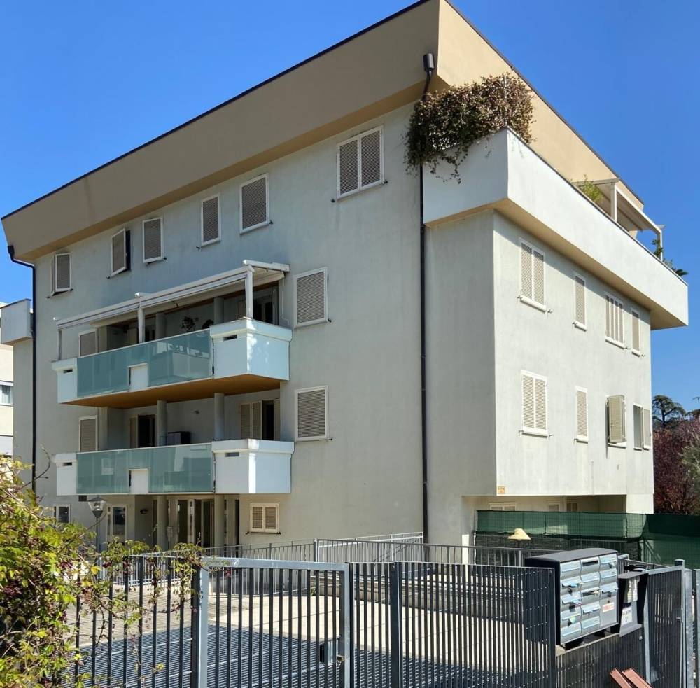 ATTICO - VIA LEONARDO DA VINCI ATTICO - Ampio appartamento di 142 mq, panoramico e luminoso, posto al 3 ed ultimo piano con ascensore, circondato da una splendida terrazza di 50 mq accessibile dalla sala, dalla cucina e da una delle camere. Ottimo contesto, questo immobile è composto da un ingresso che conduce a una spaziosa sala con zona living e pranzo, cucina abitabile, zona notte con tre camere di cui una matrimoniale con bagno privato e cabina armadio, un ulteriore bagno e un ripostiglio. Le finiture sono di pregio: pavimenti in parquet, infissi in legno. Il riscaldamento a pavimento centralizzato con contacalorie, impianto di aria condizionata con sistema a split. Un’autorimessa doppia di 38 mq posta al piano seminterrato raggiungibile con l’ascensore. centralizzato con contacalorie. ACE "C" Eptot 151,68.