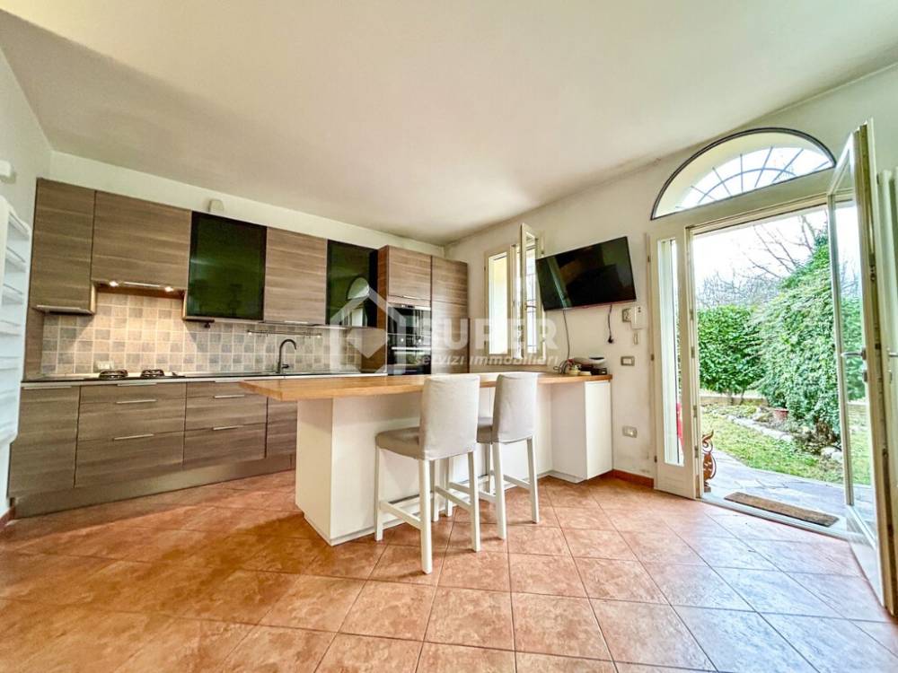 Con 700 mq di giardino privato e due posti auto!