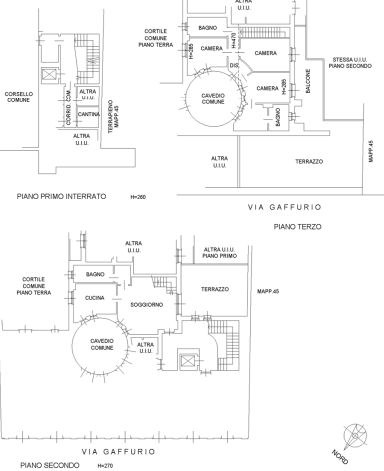 L'unità è posta al secondo piano ed è composto da: un locale cucina, bagno e terrazzo al piano secondo; tre stanze due bagni, balcone al piano terzo e locale cantina al piano primo interrato. Garage di 21 metri quadri.