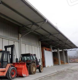 -trattasi di un edificio principale composto da autorimessa, segheria, sala macchine al piano terra e al piano seminterrato da un vano tecnico, nella zona a sud vi è un edificio tettoia utilizzato quale ricovero mezzi e materiali.