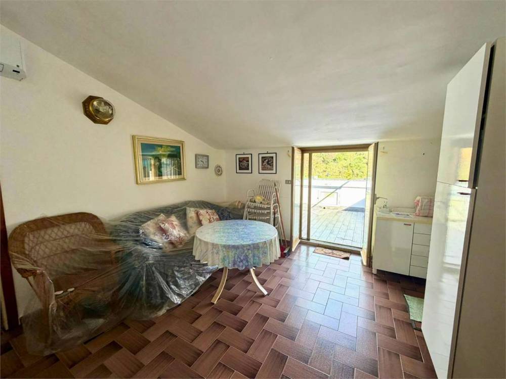Composto da: salone con angolo cottura, due camere, bagno, ampio terrazzo con vista monti e posto auto.