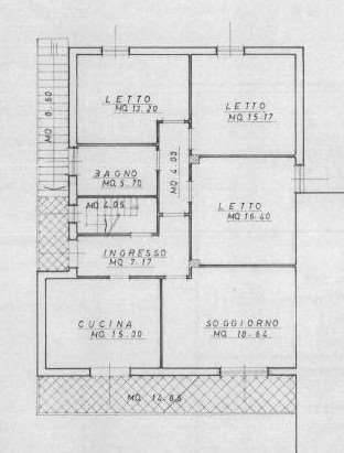 L'appartamento è costituito da ingresso, cucina, soggiorno, due camere da letto matrimoniali, una camera singola, un bagno, un ripostiglio ed un disimpegno, oltre ad ampio balcone, il tutto al piano primo.