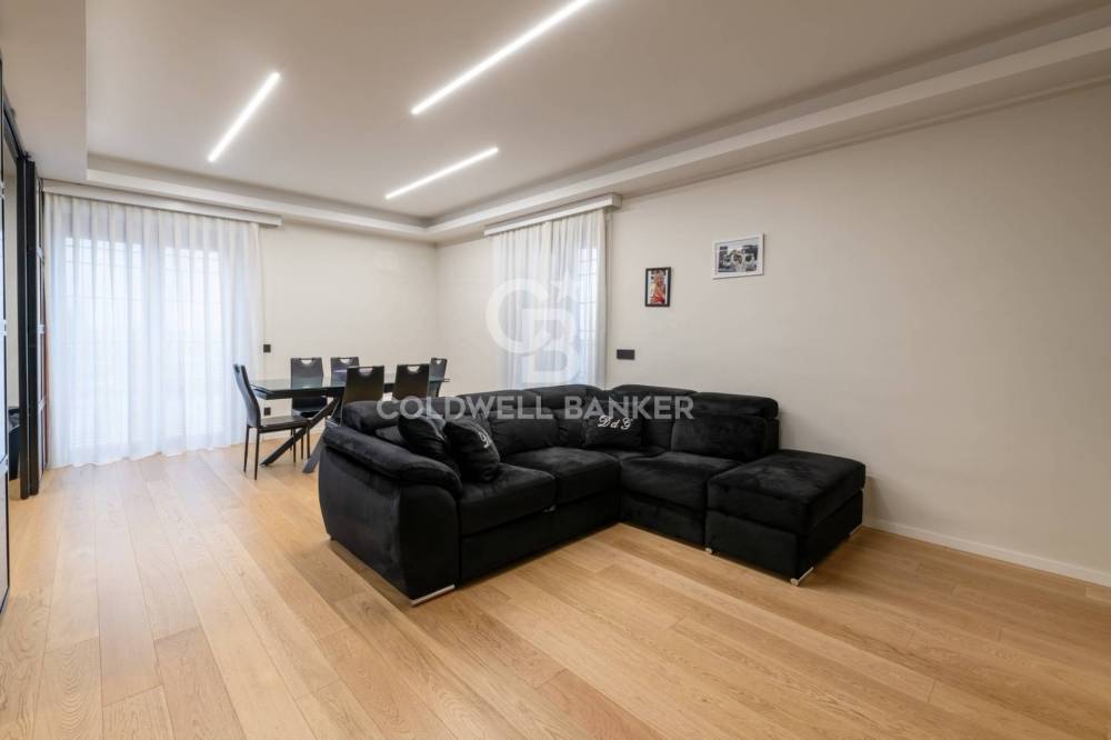 Lappartamento si apre su un elegante ingresso dotato di pratico spogliatoio/guardaroba. La zona giorno, ampia e luminosa, comprende un salone con cucina a vista. Un disimpegno conduce alla zona notte, composta da una camera padronale con cabina armadio e bagno privato, ulteriori due camere matrimoniali e un secondo bagno. Tutti gli ambienti, ad eccezione dei servizi, godono di accesso diretto al terrazzo, perfetto per pranzi e cene allaperto e facilmente attrezzabile come area living esterna.