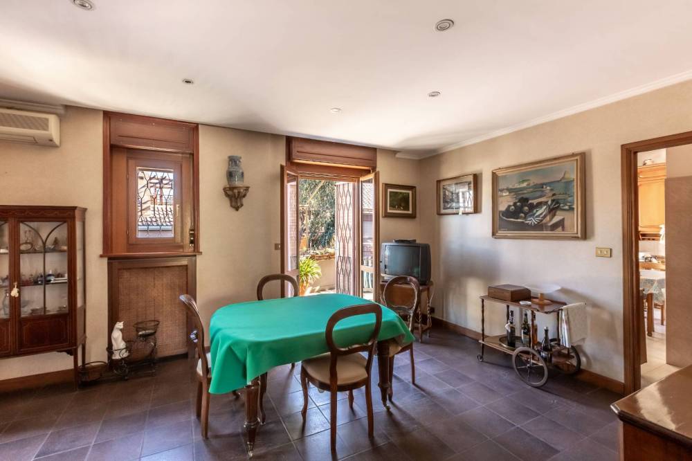 Lampia metratura (225 mq. di appartamento e 185 mq. di terrazza), si sviluppa con doppi ingressi, un elegante salone triplo di circa 60 mq., attualmente con divisorio in boiserie in legno, sala da pranzo di oltre 20 mq. collegata alla cucina abitabile di circa 15 mq., quattro camere di cui tre matrimoniali (una delle quali molto ampia), doppi servizi entrambi con finestra, ripostiglio e una spettacolare terrazza perimetrale di 185 mq,.