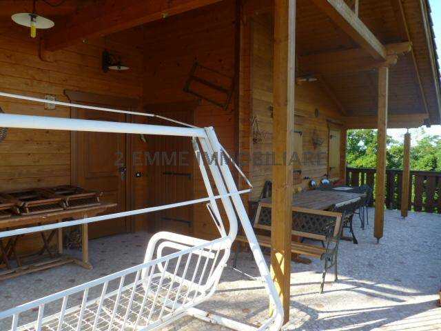 L'immobile è distribuito su due piani, al piano terra l'appartamento principale composto da: ingresso su soggiorno, angolo cottura, tre camere e due bagni. La casa è stata realizzata in legno, all'interno pavimentazione in parquet in tek, riscaldamento a pavimento, predisposizione internet. Finiture esterne in legno abete rosso d'Austria. Un ampio terrazzo abitabile e un balcone. Al piano seminterrato è stato predisposto un appartamento, da terminare ma con tutti gli impianti realizzati. Ampio garage, cantina e locale ripostiglio/lavanderia.