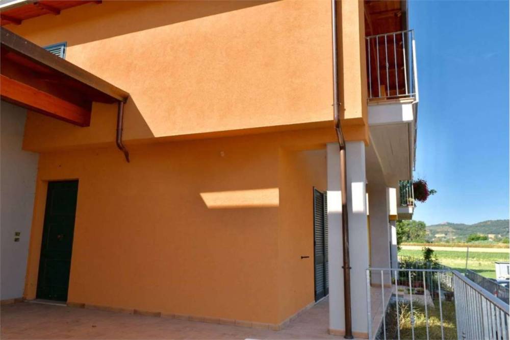 Perugia Pilonico Materno: vendita porzione di trifamiliare . L' unità è composta da : ingresso al piano terra , soggiorno, cucina, bagno , giardino privato di mq 300 c.a., al piano superiore due camere singole, una camera matrimoniale, bagno, al piano sottostrada box auto ed ulteriore ampio vano da utilizzare secondo le proprie esigenze. Tetto ventilato in legno, riscaldamento a pavimento, predisposizione aria condizionata, canna fumaria, impianto fotovoltaico e pannello solare da garage, rustico e lavanderia al piano seminterrato. Completano la proprietà un lastrico solare e un giardino. Le dotazioni includono pannelli solari, predisposizione per aria condizionata e allarme, riscaldamento a pavimento e parquet nella zona notte.