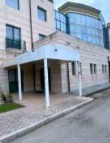 Questo accesso è materializzato da manufatto in muratura di gradevole estetica, costituito da due varchi, uno dedicato all'ingresso e l'altro all'uscita dei mezzi. Su entrambi i varchi sono installate le cancellate del tipo a scorrere e ad apertura automatica. Atri accessi pedo-nali, da natura secondaria o di servizio sono posizionati uno lungo via Giolitti ed altro su parcheggio pubblico, altro accesso carraio, molto probabilmente al solo uso per la raccolta rifiuti, immette su parcheggio pubblico medesimo. Il compendio staggito nella sua parte esterna è suddiviso in: piazzale antistante destinata all'accesso, a parco e a parcheggio privato a favore dell'utenza. Costituisce il biglietto da visita alla struttura, essa è costituita da viabilità interna a due anelli speculari aventi la carreggiata centrale comune, formanti due ampie isole sistemate a tappetto erboso in cui sono installate rispettivamente due fon-tane a forma circolare emergenti da quota campagna. L'area a verde è dotata di impianto irriguo; area complementare all'esercizio: si estende a lato nord-est e retro sino a rag-giungere la sede stradale con termine via Giolitti. All'estremità nord-est, la cui superficie si presenta a fondo bitumato, è presente l'isola ecologica al servizio dell'attività, delimitata da idonea recinzione e preceduta da area destinata alla movimentazione dei mezzi rivolti alla raccolta e lo smaltimento dei rifiuti assimilabili agli urbani. Al retro per circa due terzi del fronte del manufatto principale, sino a raggiungere il limite della sede stradale su detta, si estende un'area a verde piantumato. La restante parte in continuità alla precedente si presenta a superficie pavimentata con massello in calcestruzzo leggero posto in opera a spina pesce, in cui sono installati quattro gazebi in struttura metallica leggera, lateralmente aperti, ed è dedicata essenzialmente a ricevimenti o banchetti all'esterno. L'area relax, posizionata all'estremità sud-ovest dell'insediamento si estende per una superficie di circa 2500 mq. a forma planimetrica rettangolare ad andamento pianeggiante il cui asse maggio-re corrente in direzione sud-est/nord-ovest. Essa è separata dalla struttura ricettiva da un camminamento pavimentato in massello di calcestruzzo leggero, collegante l'area antistan-te con via Giolitti, e dallo scivolo d'accesso carraio all'autorimessa, nonché da telo oscu-rante corrente lungo l'area a parcheggio insistente presso il piazzale laterale. Via Giolitti è raggiungibile pedonalmente dalla struttura in oggetto tramite due aperture presso la relati-
