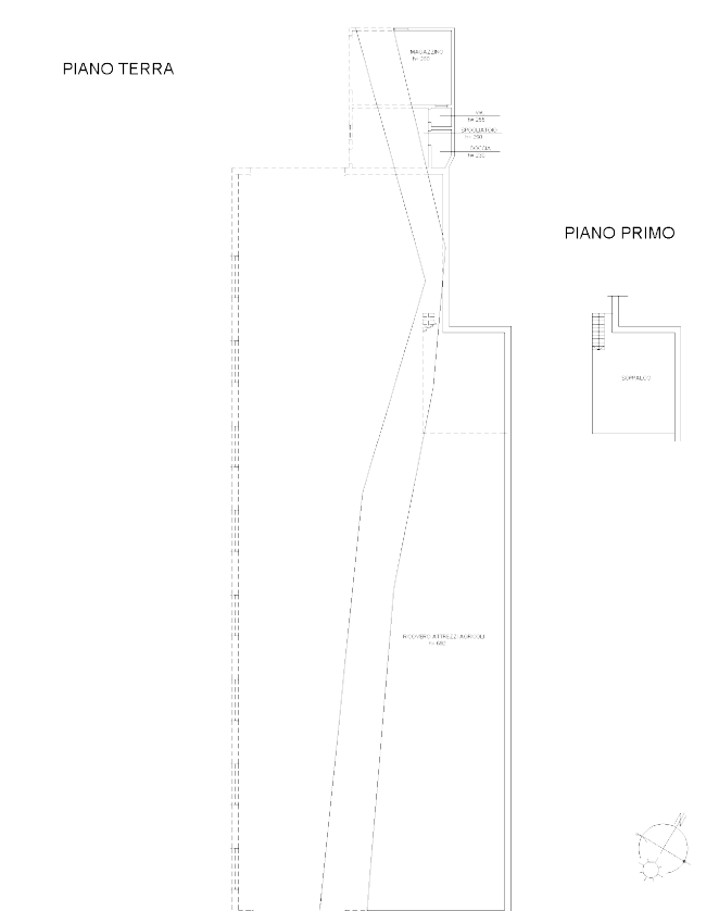 Trattasi di un complesso immobiliare composto da serre di 962,50mq per la produzione e coltivazione arboree e floricole; due capannoni uso magazzino su unico piano f.t. della sup. di mq 508 oltre a mq 19 a soppalco. Il vano principale è destinato a deposito con area soppalcata. Ingresso a nord: zona destinata a spogliatoio, wc e magazzino.