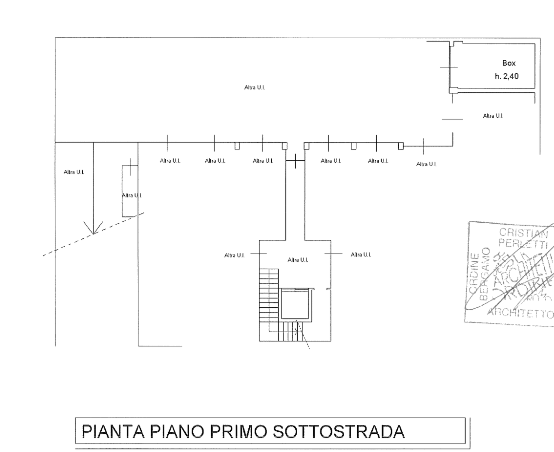 L'autorimessa posta al piano interrato con accesso pedonale e carrale, di 19 mq.