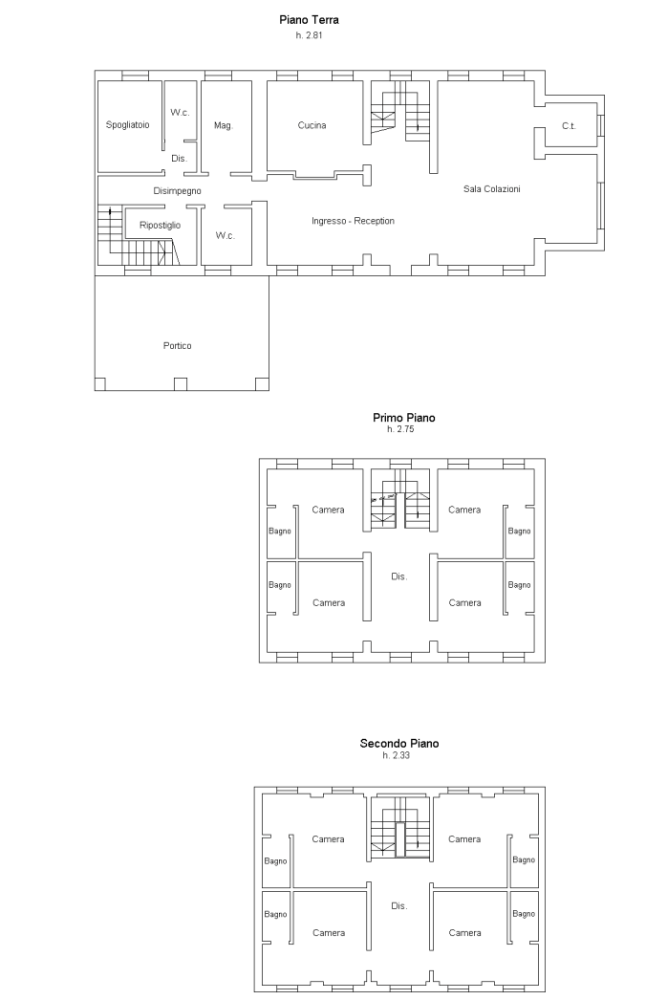 Trattasi di un complesso edilizio ad uso agrituristico con ampi spazi esterni ed è composto da spazi comuni al piano terra, due appartamenti di 3 vani ciascuno di 49mq e 53mq al piano terra, appartamento al piano primo di 5,5 vani e 145mq, camere con bagno privato al piano primo e secondo. All'esterno vi è una piscina interrata di mq. 50, un magazzino, una cella frigo esterna e vano tecnico per piscina.