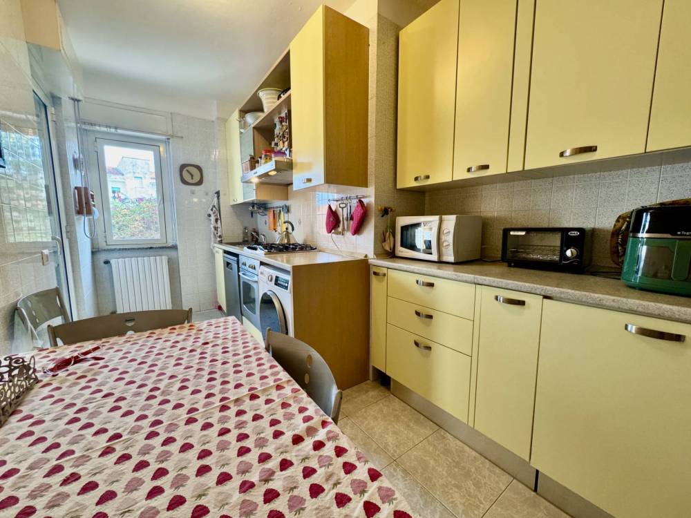 La cucina, separata dal soggiorno, è funzionale e completa di arredi ed elettrodomestici. Uno spazio pratico, pronto per essere vissuto fin da subito, che si presta sia a chi ama cucinare che a chi cerca un ambiente comodo e ben organizzato per la vita quotidiana.