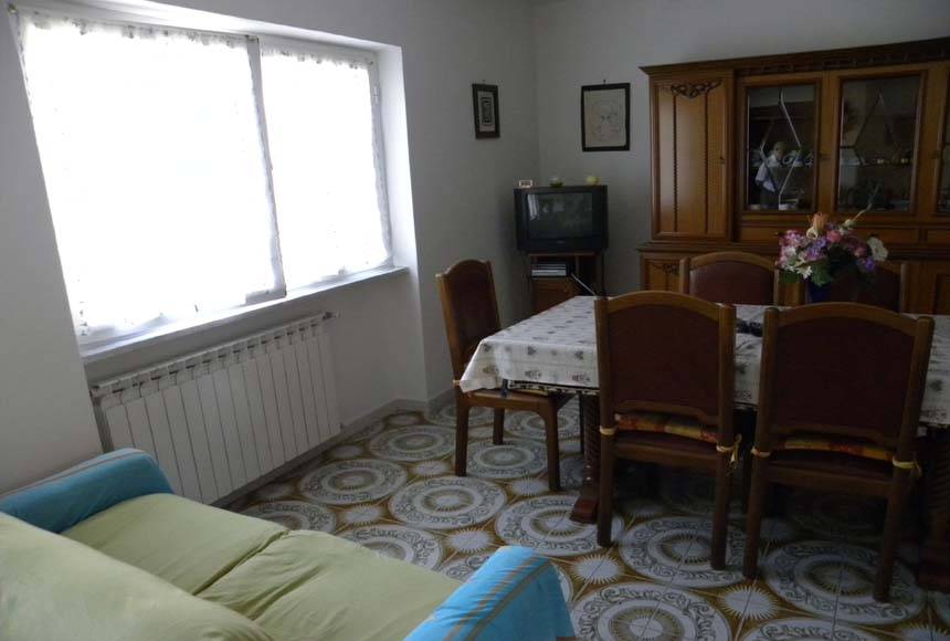 Casa in ambito di frazione, semindipendente su due livelli piano seminterrato con cantina trasformata in camera da letto, gabinetto, garage. Scala a chiocciola che porta al piano terra con sala con zona cucina, 1 camera da letto un bagno. La casa è attaccata a lato con altra, cortile d'accesso lastricato in comunione con vicino. Pavimenti ceramica, e legno, finestre in alluminio doppio vetro riscaldamento a termoconvettori a gas, fognatura comunale, acqua, luce. Struttura a posto senza lavori. Terreno mq 400 a 50 metri da casa printa subito e perfettamente abitabile. Ideale come seconda casa.