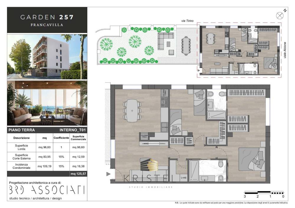 L'appartamento viene completato da un ampio ed accogliente giardino di circa 84 mq dove collocare un arredo con zona pranzo / salotto per trascorrere momenti in allegria e serenità con amici e familiari e godere della brezza marina.