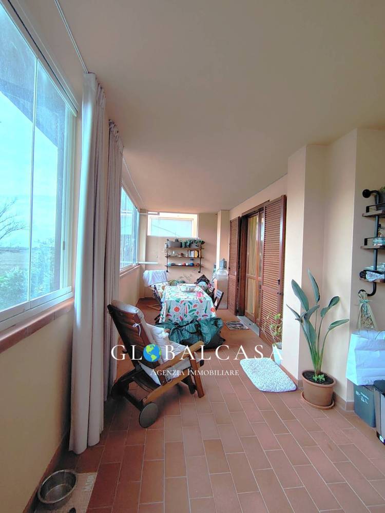 Alle porte di Grosseto vendiamo appartamento pari al nuovo, al primo piano ed ultimo senza ascensore, grande soggiorno con cucina aperta, ripostiglio e bagno con finestra, terrazza di 30 mq chiusa con vetrate panoramiche e zanzariere, tramite una comoda ed elegante scala si accede al piano superiore dove troviamo due camere di cui una con cabina armadio ed ampio terrazzo, bagno con finestra, posto auto esclusivo, riscaldamento autonomo, climatizzatore