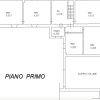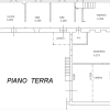 Il piano terra è composto da cucina, sala, ingresso, w.c. e due vani ad uso servizi (lavanderia e cantina). Il piano primo, destinato a zona notte, ospita cinque camere da letto, un bagno e un disimpegno.